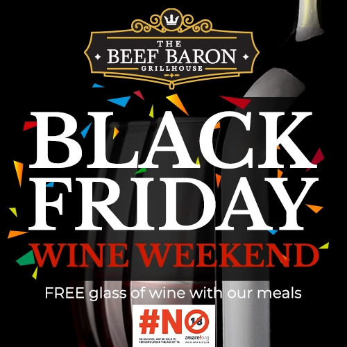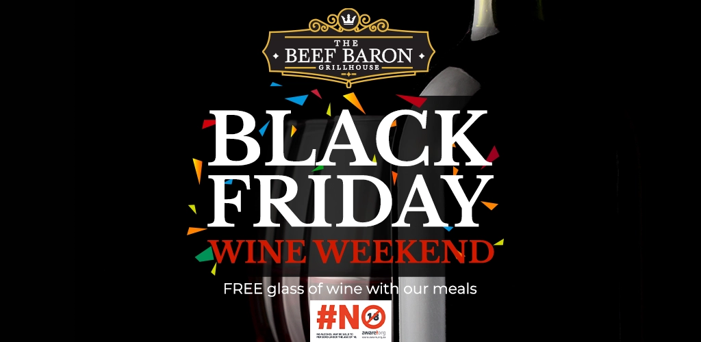 Get ready to savour Black Friday in style! This year, the Beef Baron Grillhouse is elevating your dining experience with a Black Friday Wine Weekend! Enjoy any of our signature meals and receive a complimentary glass of wine on the house.